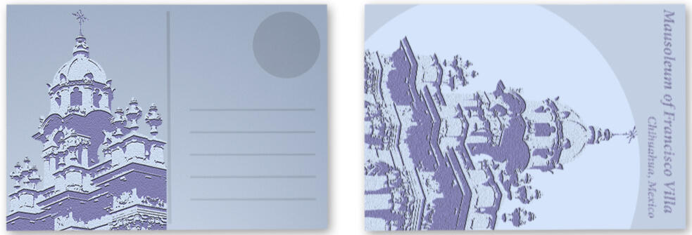 Francisco Villa Mausoleum, Chihuahua, MexicoDigital collage (postcard format), 2024